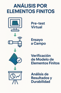 Además, utilizamos estos ensayos para validar modelos de simulación por elementos finitos, comparando los resultados teóricos con los datos reales obtenidos en campo o laboratorio.